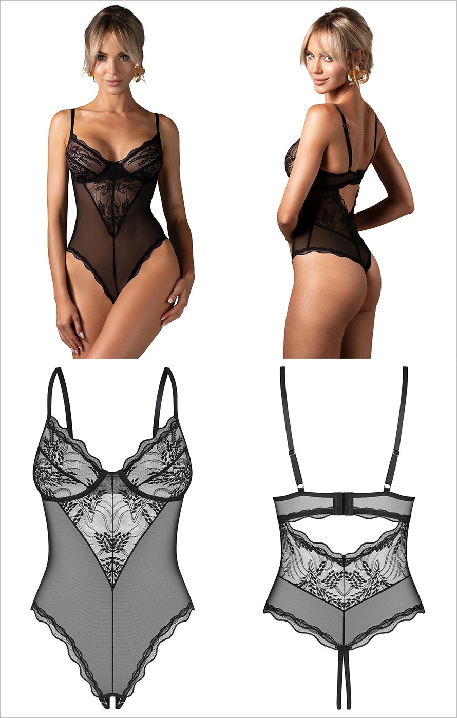 Lassen Sie Ihr Verlangen frei in diesem offenen Teddy Perisia von Obsessive zum Ausdruck kommen. Dieser Body besticht durch die perfekte Harmonie zwischen edlen Materialien und ausgearbeiteten Details. Die weiche und dehnbare Spitze, kombiniert mit einem wunderschönen Tüll, schafft ein unwiderstehliches Spiel der Transparenz, das die Blicke auf sich zieht, ohne zu viel zu enthüllen. Sein zartes Blumenmuster und die dekorativen Abschlüsse verleihen dem Ensemble eine künstlerische und moderne Note. Entworfen, um jede Silhouette zu betonen, verfügt dieses Modell über Bügel-Cups, die die Brust elegant formen, während die verstellbaren Träger und der Mehrfachverschluss am Rücken eine perfekte Passform gewährleisten. Die abnehmbaren Schrittträger bieten zusätzliche Freiheit und ermöglichen es, das Stück nach Ihren aktuellen Wünschen anzupassen. Gefertigt aus hochwertigen Stoffen, die Polyamid und Elasthan kombinieren, vereint dieser Teddy Komfort, Flexibilität und Langlebigkeit für ein ebenso angenehmes wie verführerisches Tragegefühl.