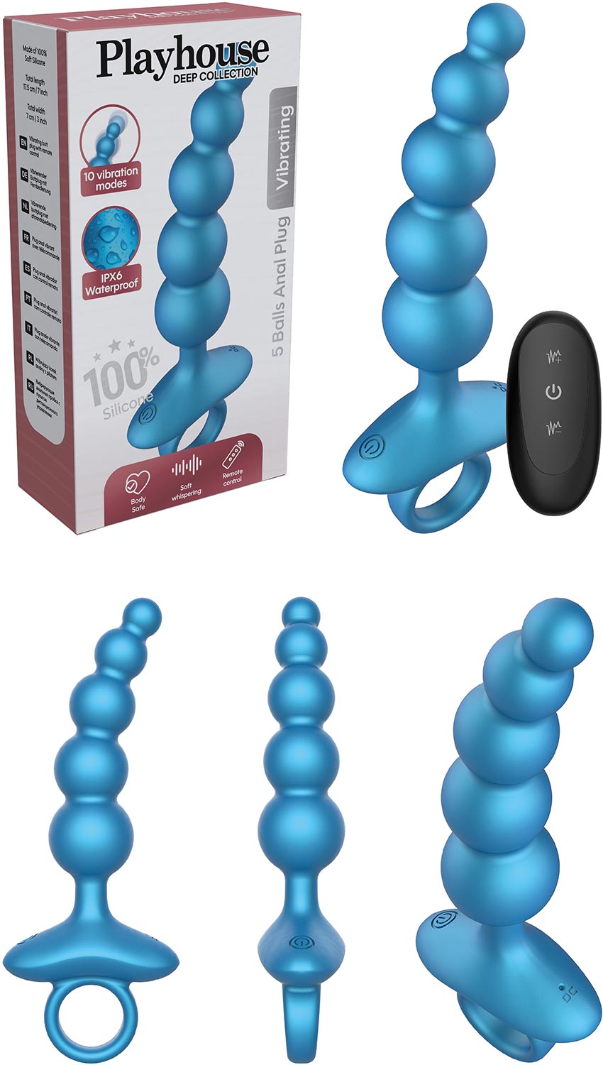 Mit diesem vibrierenden Analperlen-Set und der Fernbedienung Playhouse 5 Balls überschreiten Sie Ihre Grenzen und erleben Sie das Vergnügen mit einer beispiellosen Intensität!