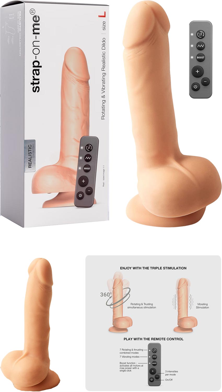 Erleben Sie ein einzigartiges sensorisches Erlebnis mit diesem rotierenden und vorwärts-rückwärts vibrierenden Strap-on-me Vibrator, einem Sextoy mit realistischem Design, das Sanftheit und Kraft vereint. Seine ultra-weiche Spitze und die flexible Silikontextur bieten einen sanften Kontakt, während seine 7 Rotationsfunktionen in Kombination mit Vorwärts-Rückwärts-Bewegungen und 7 Vibrationsmodi eine sich entwickelnde und fesselnde Stimulation erzeugen. Kompatibel mit Gurten und ausgestattet mit einem starken Saugnapf, eignet er sich sowohl für den Solo- als auch für den Paargebrauch.