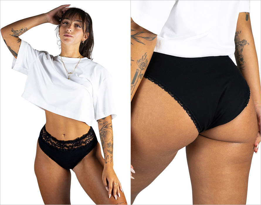 Sa dentelle délicate sublime les hanches et le bas du ventre avec douceur, tandis que sa coupe échancrée flatte la silhouette tout en assurant un excellent maintien. La zone absorbante qui remonte à l’avant et à l’arrière offre une sécurité optimale, pour bouger librement sans craindre les fuites, même allongée. C’est la culotte idéale pour celles qui veulent se sentir belles, confiantes et à l’aise, même pendant leurs règles.