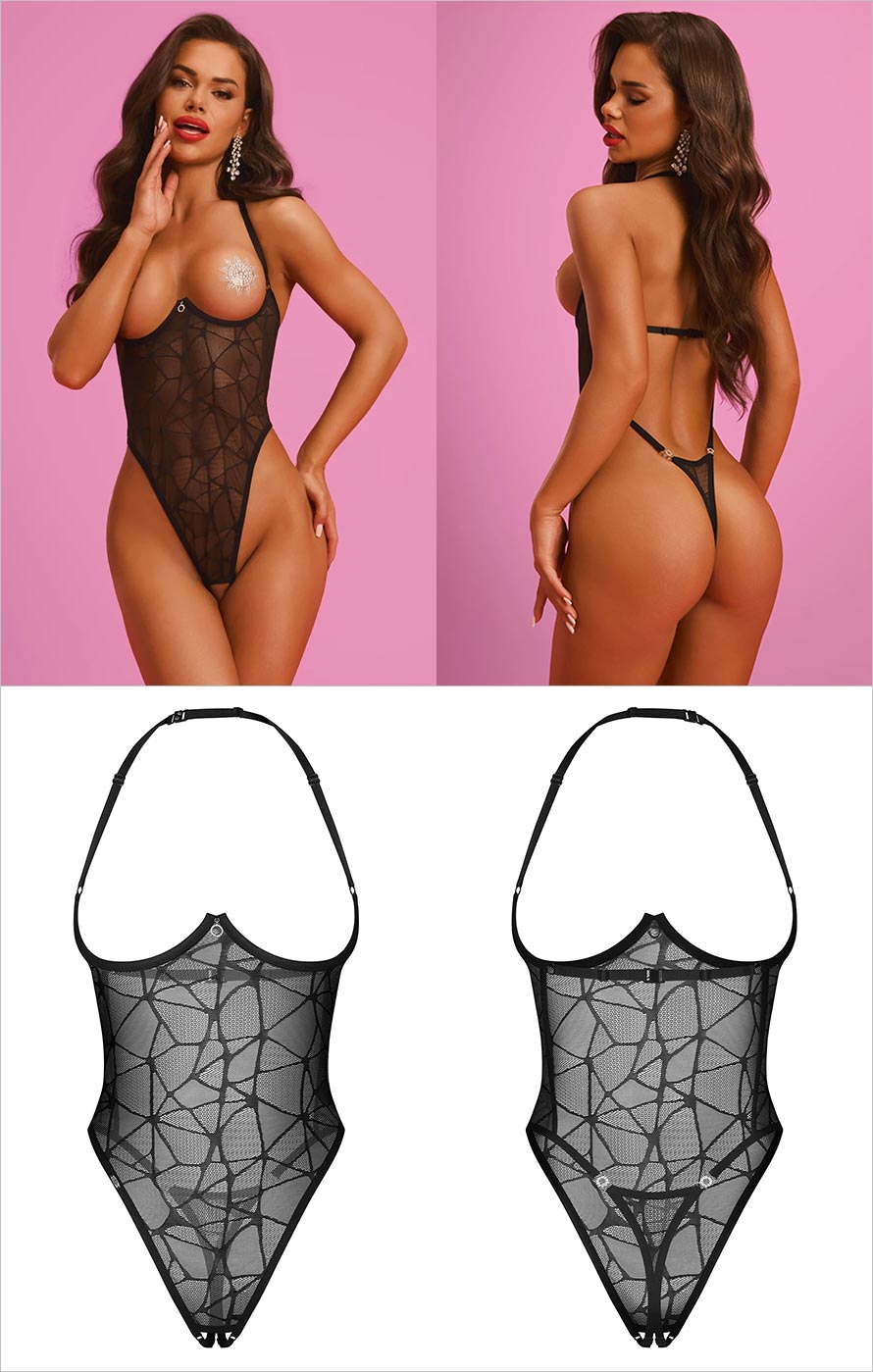 Affirmez votre sensualité avec ce teddy ouvert Obsessive Olianna, une pièce audacieuse qui ne laisse rien au hasard. Conçu pour les femmes en quête de liberté et de pouvoir, ce body dévoile la poitrine sans bonnets tout en la soutenant grâce à des armatures délicates. Sa coupe ouverte à l’entrejambe et sa maille transparente au motif géométrique créent un équilibre parfait entre modernité et provocation, tandis que le dos nu et les anneaux scintillants subliment chaque mouvement.